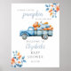 Ce joli panneau de bienvenue pour une baby shower présente des feuilles rustiques d'automne, un mignon camion bleu rempli de citrouilles et peut être personnalisé avec votre nom et date spéciale. Conçu par Thisisnotme©