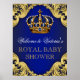 Panneau de bienvenue pour une baby shower Prince avec une couronne royale bleue et or sur un fond tourbillonnant de bleu royal et or. Ce panneau de baby shower royal est facilement personnalisable pour votre événement en ajoutant simplement le texte de votre choix dans le style de police que vous préférez. Vous pouvez également déplacer et redimensionner la couronne selon les besoins.