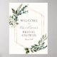 Accueillez vos invités à votre shower avec ce magnifique poster, doté d'un cadre doré avec des brins de verdure. Ajoutez le nom de l'invitée d'honneur, la date de la douche et un texte de bienvenue personnalisé à l'aide des champs fournis.