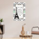 De jolies et sophistiquées invitations de douche de mariée de style parisien avec une bordure florale damassée noire et blanche antique vintage, un design de ruban imprimé vert menthe et jade et la Tour Eiffel dessus. Conçu par Chrissy H. Studios, LLC. Tous droits réservés.