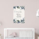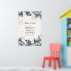 Accueillez vos invités à votre douche nuptiale avec cette superbe affiche, dotée d'une bordure de verdure persistante, de branches de sapin, de baies bleues hivernales et de flocons de neige. Ajoutez le nom de la mariée, la date de la douche et le texte d'accueil personnalisé en utilisant les champs fournis.