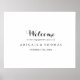 Ce panneau de bienvenue pour une fête de fiançailles en calligraphie moderne est parfait pour une célébration de fiançailles simple. Le design simple et élégant présente une typographie classique et fantaisiste en noir et blanc.