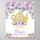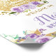 Signe de bienvenue pour une Baby Shower sur le thème de la fête du thé fleuri violet sucré et fantaisiste / Affiche, avec une théière pailletée dorée et de jolies fleurs mauves et violettes aquarelles. Personnalisez-le facilement et rapidement avec vos informations, il suffit de cliquer sur le bouton "personnaliser" pour réorganiser et mettre en forme le style et l'emplacement du texte. Choisissez parmi des formats allant du petit au très grand. Utilisez les affiches de petite taille comme pancartes de bienvenue, encadrées et posées sur la table de fête. Utilisez les affiches de grande taille comme bannières de bienvenue ou décorations de toile de fond. Conçu pour aller avec notre collection "Fleurs violettes sucrées Baby Shower". Articles assortis disponibles en magasin ! (c) The Happy Cat Studio