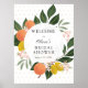 Accueillez vos invités à votre fête de mariage avec ce magnifique poster, doté d'un cadre circulaire entouré d'oranges, de citrons, de feuilles et de verdure. Ajoutez le nom de l'invitée d'honneur, la date de la fête et le texte de bienvenue personnalisé à l'aide des champs fournis.