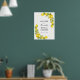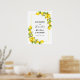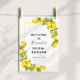 Accueillez vos invités à votre fête de mariage avec ce magnifique poster, qui présente un cadre jaune entouré de branches de verdure avec des citrons. Ajoutez le nom de l'invitée d'honneur, la date de la fête et un texte de bienvenue personnalisé à l'aide des champs fournis.