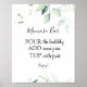 Panneau de bar Momosa avec une illustration de verdure charmante et les mots Momosa bar dans un script de calligraphie amusant. Ou modifiez le titre pour dire Mimosa Bar pour une fête de mariage.