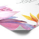 Ce panneau de signalisation coloré pour boissons de mariage floral tropical est parfait pour votre mariage moderne et bohème aux couleurs vert, violet et pêche. Le design présente un élégant bouquet de verdure et de fleurs classiques de style aquarelle de plage, comprenant de l'eucalyptus vert sauge, des proteas mauves et rouges, des hibiscus rose pâle, des oiseaux de paradis orange et bleus, et des feuilles de palmier vert foncé. Le design est idéal pour un mariage de voyage simple, créatif et unique au printemps, en été, en automne ou en hiver ! Veuillez trouver d'autres papeteries de mariage assorties ou coordonnées dans le reste de la collection.