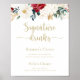 Ce panneau de boissons signature à fleurs en or classique est parfait pour un mariage rustique. Le design présente des fleurs et des baies blanches, bordeaux et or à l'aquarelle avec un feuillage vert disposé en bouquets élégants.