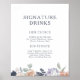 Ce panneau de boissons signatures florales rustiques simples est parfait pour votre élégant mariage printanier vintage. Il est conçu avec des roses classiques, des pivoines blush simplistes et des hortensias violets poussiéreux. Tout cela est accompagné de touches d'eucalyptus vert et de feuilles de marine. Avec toutes ces fleurs aquarelles légères et colorées, vous êtes sûr d'obtenir l'ambiance souhaitée.