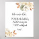 Panneau de bar Momosa avec une illustration de feuilles d'automne et citrouilles charmantes avec les mots Momosa bar dans un script de calligraphie amusant. Ou modifiez le titre pour dire Mimosa Bar pour une douche de mariage. Correspond à notre collection Rustic Autumn disponible dans la boutique Adore Paper Co. Zazzle.