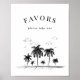 Panneau de cadeaux de mariage sur la plage avec palmier. Parfait pour un mariage moderne sur la plage.