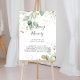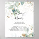 Ce panneau de calligraphie de eucalyptus doré à la mémoire de est parfait pour un mariage rustique ou une baby shower. Ce design artistique présente un feuillage doré et vert peint à la main à l'aquarelle, inspirant la beauté naturelle.