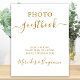 Panneau de livre d'or pour photo ! Calligraphie simple mais élégante, ce panneau de livre d'or pour photo de mariage comporte un livre d'or en calligraphie élégante, prenez une photo, placez-la dans le livre et laissez un message pour. Personnalisez ce panneau de mariage élégant avec vos noms ! COPYRIGHT © 2020 Judy Burrows, Black Dog Art - Tous droits réservés. Panneau de calligraphie dorée élégant pour photo de mariage