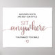 Ce panneau de calligraphie en or rose simple "à poser n'importe où" est parfait pour un mariage moderne. Le design minimaliste présente une police de caractères élégante à l'aspect de pinceau et un cœur féminin charmant dans un faux feuillet d'or rose. Le panneau indique "les places assignées ne sont pas notre style, asseyez-vous n'importe où qui vous fait sourire".