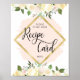 Affiche Panneau de carte de recette en or rose blush flora