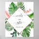 Panneau de cartes et cadeaux de fête de mariage, de baby shower, de 1er anniversaire et de fête de bachelorette avec palmiers tropicaux aquarelle et feuille d'or géométrique rose gold pour la mariée à venir ou la future maman - comprend une belle et élégante typographie script avec des fleurs roses blush botaniques modernes et de la verdure tropicale hawaïenne pour la célébration spéciale.