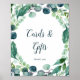 Ce panneau de cartes et cadeaux de verdure luxuriante et d'eucalyptus est parfait pour un mariage élégant dans le jardin ou une fête prénuptiale. Le design botanique moderne présente de superbes eucalyptus bleus aquarelles et des feuilles vertes. La ligne de texte au bas du panneau peut être personnalisée avec la date, les noms des mariés ou un court message comme "Merci". Ce panneau peut être utilisé pour un mariage ou tout événement ou fête.