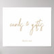 Affiche Panneau de cartes et cadeaux en écriture dorée et