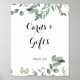 Ce panneau de cartes et cadeaux eucalyptus foliage delight est parfait pour un mariage moderne ou une fête de mariage. Le design présente un élégant eucalyptus botanique dessiné à l'aquarelle, inspirant la beauté naturelle.