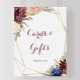 Ce panneau rustique en forme de feuilles dorées avec des fleurs et un message est parfait pour un mariage moderne ou une fête de mariage. Le design présente des fleurs aquarelles dessinées à la main en violet, marine, rose, bordeaux, des fleurs bleues, des feuilles vertes et dorées ornant un cadre géométrique élégant.