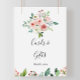 Ce panneau élégant et délicat avec des cartes florales et des cadeaux d'automne est parfait pour un mariage moderne ou une fête de mariage. Le design présente des roses roses, roses et blanches illustrées, des pivoines avec un feuillage vert regroupées en bouquets, accentuant les belles couleurs de l'automne.