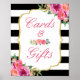 Affiche de panneau de cartes et cadeaux Fuchsia Floral Black Stripes.