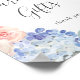 Ce panneau élégant représentant des hortensias bleus avec des cartes et des cadeaux blancs est parfait pour un mariage de printemps ou d'été ou une fête de mariage. Le design floral classique présente de délicats hortensias bleu poudré à l'aquarelle, rehaussés de fleurs roses blush neutres et de feuilles vertes. La ligne de texte au bas du panneau peut être personnalisée avec la date, les noms des mariés, ou un court message comme "Merci". Ce panneau peut être utilisé pour un mariage ou tout autre événement ou fête.