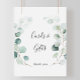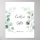 Ce panneau de cartes et de cadeaux de eucalyptus vert d'été est parfait pour un simple mariage ou une fête de mariage. Le design présente de belles feuilles de eucalyptus vert peintes à la main à l'aquarelle, inspirant un charme naturel.