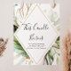 Ce panneau de cierge géométrique or tropical est parfait pour un mariage à destination. Le design présente des éléments peints à la main en aquarelle or et des feuilles de palmier et de bananier vertes avec des fleurs roses regroupées en bouquets, ornant un cadre géométrique.