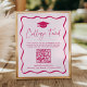 Ajoutez une touche amusante et élégante à votre fête de fin d'études secondaires avec ce panneau de code QR du fonds universitaire à encadrement ondulé moderne. Avec une illustration de casquette de fin d'études en haut, "Fonds universitaire" est écrit dans un script manuscrit rose ludique, entouré d'un cadre ondulé sur un fond rose doux. Personnalisez l'affiche de fin d'études avec du texte personnalisé et un lien vers votre service de paiement préféré, ce qui permet aux invités de contribuer facilement à votre avenir éducatif. Ce panneau accrocheur est le moyen idéal pour célébrer et recueillir des dons lors de votre fête de fin d'études !