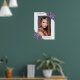 Élégant panneau de bienvenue de célébration de vie/funéral floral violet avec photo, avec des roses violettes et des fleurs de baby's breath décorant une photo à l'intérieur d'un cadre argenté. Articles assortis disponibles.