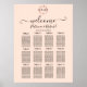 Un simple panneau de plan de table chic avec monogramme en feuille dorée rose et rose pêche. Facile à personnaliser avec vos détails. Panneau de plan de table moderne boho éditable, faire-part de mariage avec photo de couronnes de fleurs, personnalisable, police calligraphiée manuscrite, simple, élégant.
