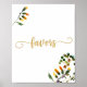 Le panneau de faveurs de fleurs sauvages présente une calligraphie moderne en faux or, des florales à l'aquarelle et un fond blanc. Ce panneau est également disponible avec un texte en noir. Voir la collection pour des produits coordonnés.
