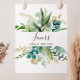 Ce panneau de faveurs fleuris dorés avec feuillage tropical est parfait pour un mariage moderne ou une baby shower. Le design présente principalement un feuillage vert aquarellé peint à la main associé à des fleurs dorées, ornant un cadre géométrique élégant.
