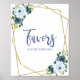 élégantaquarellefleursmodernepanneau de shower de mariagegéométriquedélicatpanneau de faveursbleu poussiéreuxcadre en feuille dor
