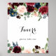 Ce panneau de Favors de calligraphie de Bourgogne rustique d'automne est parfait pour un mariage moderne ou une douche de mariée. Le design présente des fleurs peintes à la main radieuses et gracieuses de couleur Bourgogne, rouge, marine, bleue et rose, inspirant la beauté naturelle.