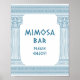 Enseigne de table élégante pour une fête en Toge 'Bar à Mimosa, profitez' avec des piliers de temple élégants et un motif grec en bleu. Parfait pour vos mariages, fiançailles, fêtes de fin d'études, anniversaires, save the dates, enterrements de vie de jeune fille et fêtes d'anniversaire sur le thème de la Grèce antique ou de la Rome antique.