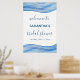 Ce design élégant et gracieux est peint à la main en aquarelle dans des nuances de bleu clair, de bleu classique et de bleu marine. Le design abstrait ressemble à des vagues océaniques, parfait pour une fête de mariage sur le thème de la plage, de l'océan ou de la marine. Ajoutez facilement le nom de la mariée et la date de l'événement à ce magnifique panneau de fête de 24x36.