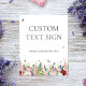 Féminin et moderne, ce panneau de fête peut être personnalisé pour votre fête de mariage. Le design présente un beau jardin de fleurs aquarelles roses et violettes comprenant des roses, des tulipes, de la lavande et du feuillage d'eucalyptus avec des papillons aux couleurs vives et des abeilles qui volent autour. Vous pouvez personnaliser tous les détails de texte et de placement graphique en fonction de vos besoins spécifiques.