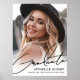 Ce panneau de fête de remise de diplôme simple et minimaliste présente une photo pleine page avec un dégradé blanc doux en bas, associé à un texte noir épuré pour un look frais et moderne. « Diplômé » est affiché dans une écriture manuscrite élégante, avec le nom du diplômé, « Promotion 2026 », et le nom de l'école indiqués ci-dessous dans des polices serif noires classiques pour une conception nette et facile à lire.