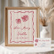Ce magnifique panneau de jeu de devinettes de douches côtières présente des lettres manuscrites rouges accentuées d'une bordure de ruban ondulé, avec deux illustrations de coquillages dessinés à la main et les mots "combien de coquillages sont dans le pot?" Prêt à cadrer ; choisissez l'impression et l'expédition professionnelles ou l'option de téléchargement instantané pour imprimer localement ou à la maison. Associez-vous à nos cartes de jeu de devinette assorties de notre collection Love & Lobster.