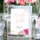 Panneau de table de douche nuptiale avec le script "Cartes et Cadeaux" avec parties scintillant rose vif et aquarelle rose design floral. Choisissez un cadre design pour lui et affichez-le sur la table à boisson.