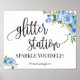 Affiche Panneau de la station pailletée bleu boho chic pou