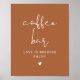 le modèle de bar à café imprimable est doté d'une police manuscrite pointue et d'un design minimaliste moderne avec une combinaison de couleur terre cuite et rouille. Utilisez ce panneau pour votre réception de mariage, douche nuptiale, fête de retraite, etc. Modifiez le libellé *le plus* pour répondre à vos besoins. Combiner avec des objets supplémentaires de la collection CORIANDER pour un look cohésif