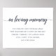 Un panneau simple et chic est parfait pour être placé sur votre table de réception de mariage en mémoire ou en exposition en l'honneur de vos proches qui nous ont quittés. Personnalisez l'en-tête et le corps du texte (illustré avec "En souvenir aimant" et un court poème) dans une riche écriture calligraphique bleu marine et des lettres majuscules classiques.