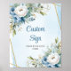 Affiche Panneau de mariage aquarelle bleu or pailleté verd