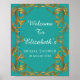 Affiche Panneau de mariage avec fioritures turquoise et or