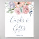 Ce panneau avec des fleurs de rose saupoudrées de mariage et un panneau de cadeaux est parfait pour un mariage de printemps ou d'été. Le dessin floral romantique présente des fleurs de lilas pourpre, de rose carminé et de pêche disposées dans un magnifique bouquet pastel doux. La ligne de texte au bas du panneau peut être personnalisée avec la date, les noms des mariés ou un court message comme "Merci". Ce panneau peut être utilisé pour un mariage, une fête de mariage ou tout événement ou fête.