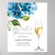 Célébrez votre fête de mariage dans le style avec notre panneau de bienvenue "Petits pétales et Prosecco" bleu, conçu avec élégance pour sublimer votre événement avec des hortensias aquarelles bleus et des détails botaniques doux. Créé pour les thèmes de fête de mariage aux hortensias, ce panneau allie typographie moderne et illustration florale intemporelle — un accord parfait pour une décoration d'événement qui offre une célébration élégante et romantique.