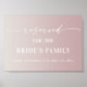 Panneau de mariage Ombre Dusty Mauve réservé à la famille de la mariée - dans une belle écriture manuscrite et votre texte personnalisé. Un design élégant mais simple avec un fond dégradé ombré doux et subtil. Cliquez simplement sur le lien de l'outil de conception, affiché sous la zone de personnalisation du texte à droite, et choisissez la couleur de fond personnalisée. Ce modèle d'affiche permet de créer rapidement et facilement des ajouts époustouflants à votre décoration de mariage. Les panneaux peuvent être agrandis, il existe de nombreuses tailles au choix, ainsi que des options de cadre et de carton de montage personnalisés.